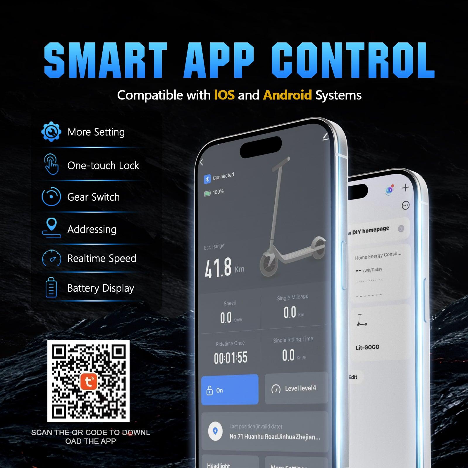 • Smart Connectivity: Offers app control for adjusting performance settings, customizing the LED light strip, monitoring trip data, and utilizing an anti-theft alarm function via your mobile device.