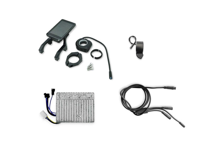 The Display set contains Display, ON/OFF Button, Controller (Banana head connector), Joined cable and Acceleration Level.
