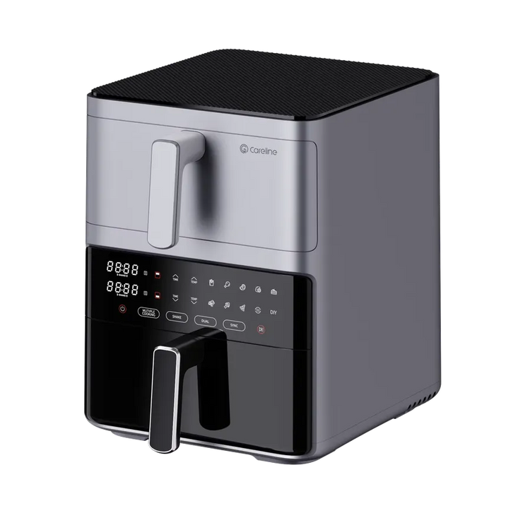 HKM-679443 Dual-core Digital Air Fryer with High Capacity - Oil-Free Cooking Appliance in Silver Finish