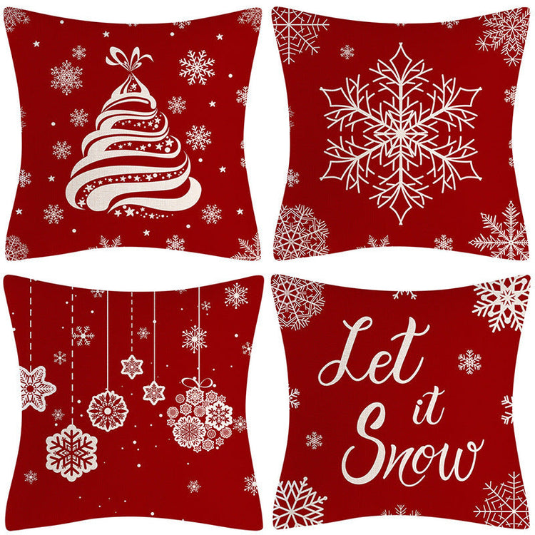 KTX-530515 Christmas Red Cartoon Pillow Cover 45x45cm Nordic Style Linen Set of 4