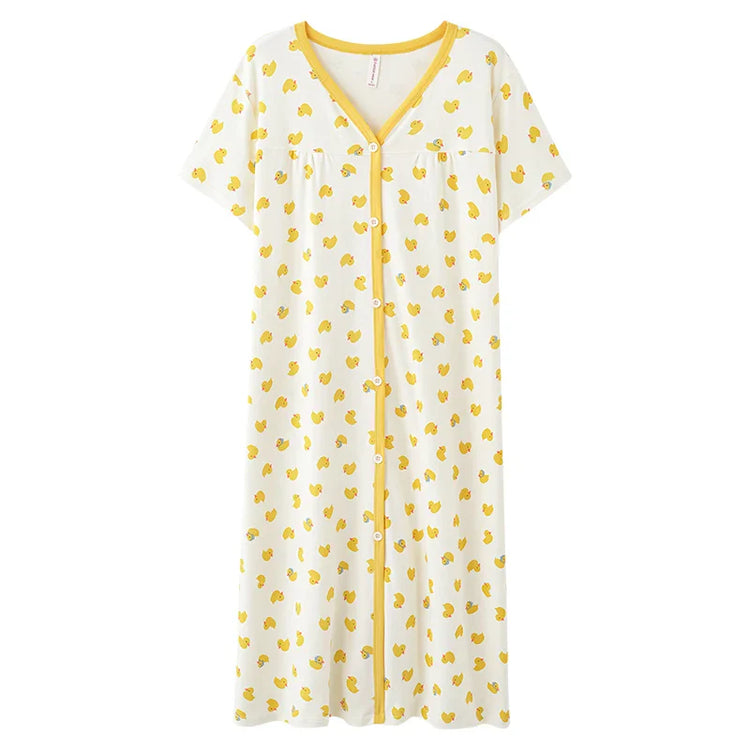 HKM-099795 Lovely Printed Women's Nightdress Cotton Short Sleeve Single Skirt 2024 Summer Loose Comfortable Cardigan Home Wear Wholesale