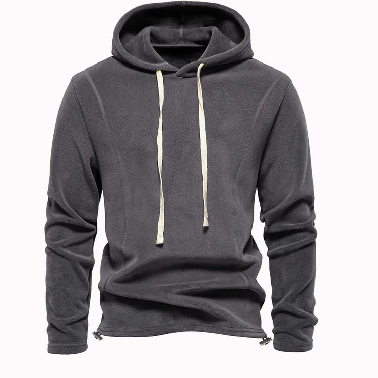 HKM-194643 Men's Reversible Arctic Fleece Pullover Sweatshirt Pocket Hooded Warm Sweater Street Solid Color Long Sleeve Pullover Sweatshirt