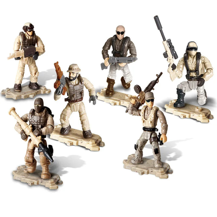 HKM-148563 Mixed Special Forces Action Figures Set with Military Accessories - 6-Piece Toy Soldier Collection for Ages 4+
