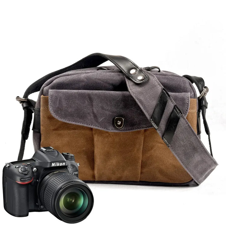 HKM-073107 Vintage Waxed Canvas Camera Bag for DSLR and Video Equipment