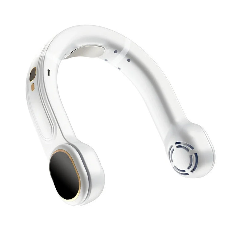 HKM-573843 Rechargeable Bladeless Neck Fan with Digital Display and 5 Speed Settings for Outdoor Use