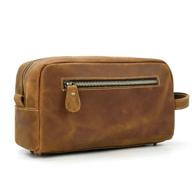 HKM-678931 Vintage Leather Multifunctional Travel Clutch and Toiletry Bag for Men and Women