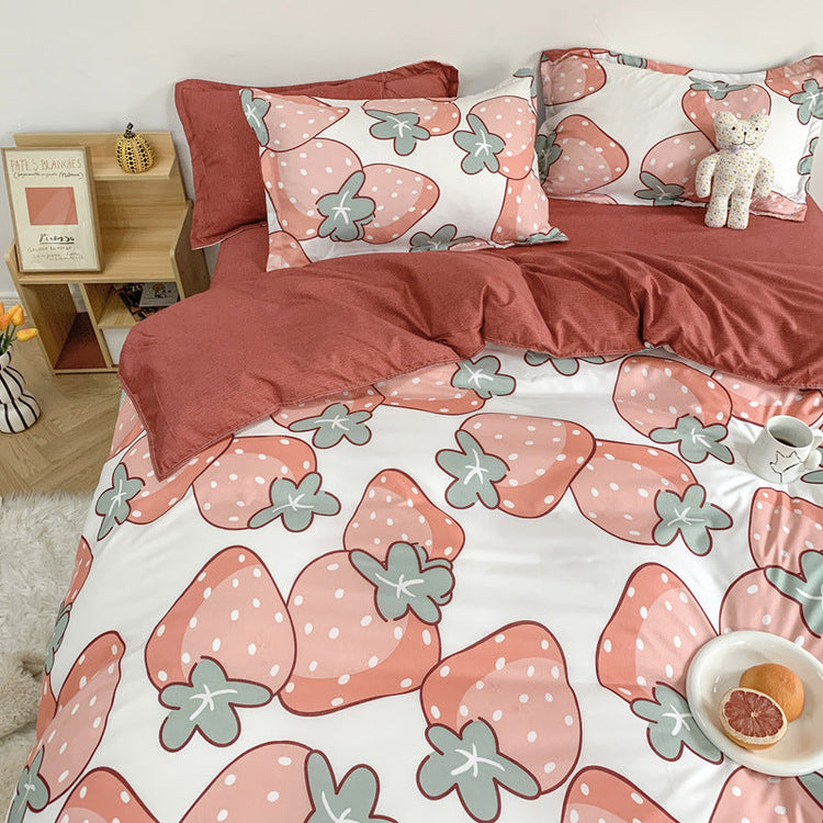 HKM-719315 Cute Cartoon 4-Piece Bed Sheet Set with Pillowcases and Quilt Cover