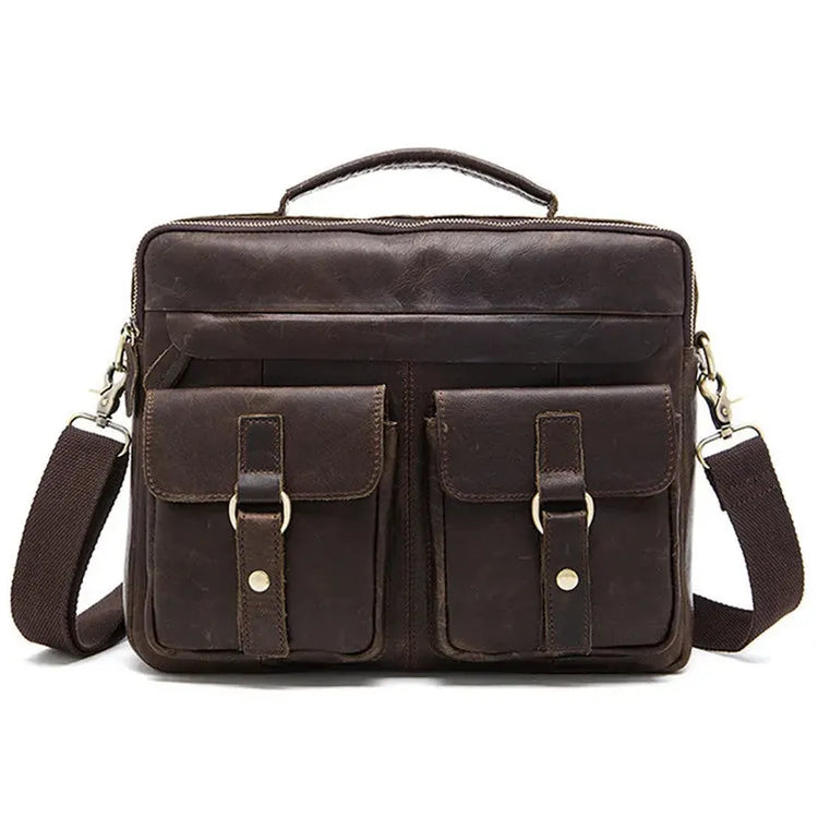 HKM-138835 Genuine Leather Crossbody Briefcase for Men - Versatile Laptop Business Bag