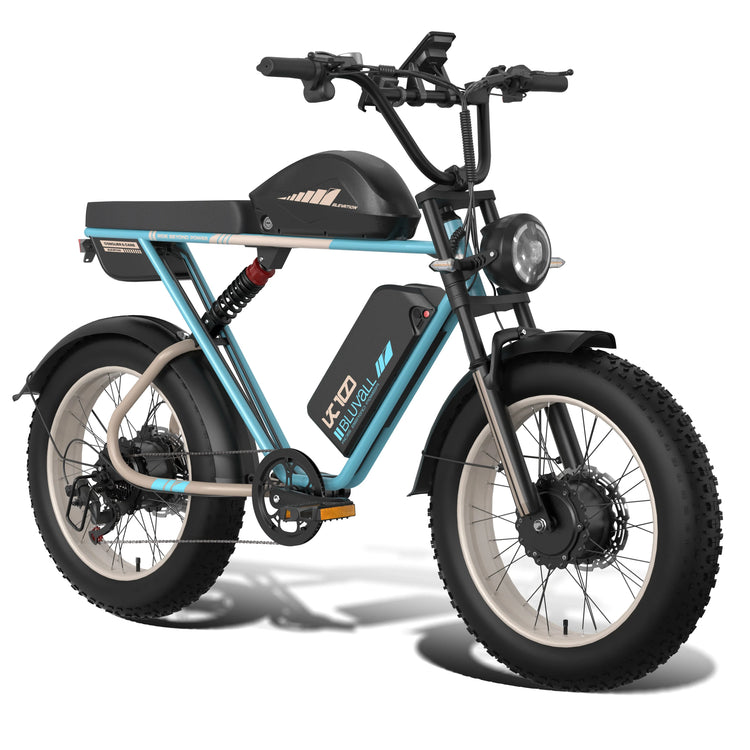 The KTX-007251 features 20-inch fat tires, providing excellent traction and stability, whether you're navigating snow, mud, or pavement. Its dual suspension system ensures a smooth ride, absorbing bumps along the way for an enjoyable experience. With a powerful 2000W rear hub motor, you can tackle inclines and rough surfaces with ease, while the 80-90 Nm torque offers impressive acceleration.