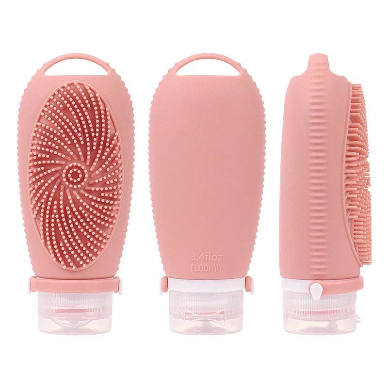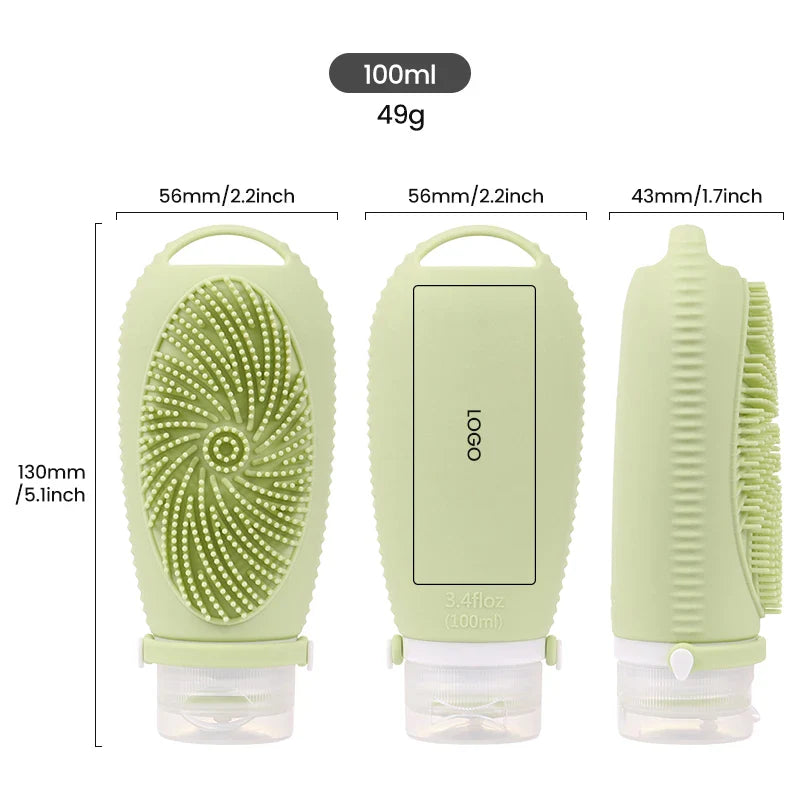 HKM-079315 Portable 100ML Reusable Silicone Travel Shampoo and Lotion Bottle with Cleaning Brushes