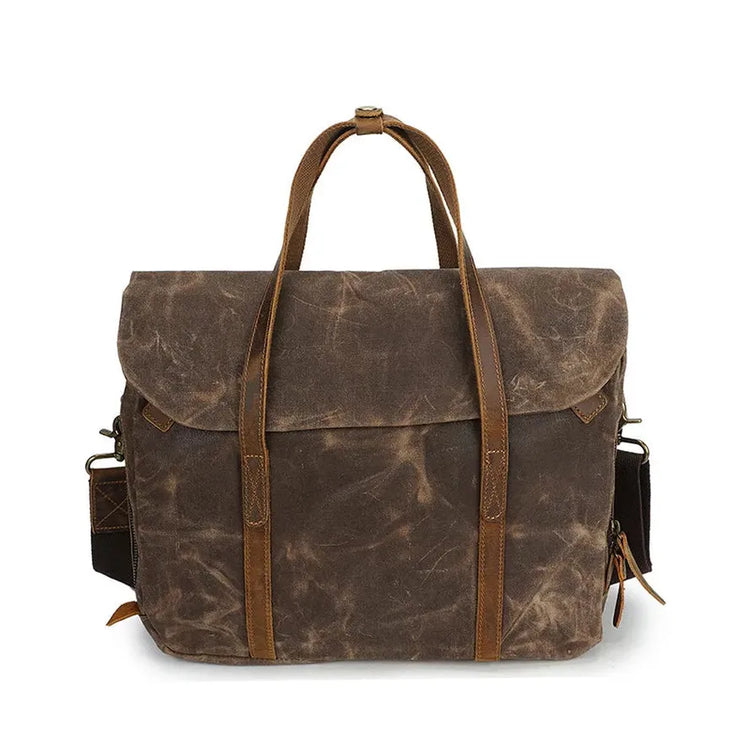 HKM-155795 Vintage Oil Waxed Canvas Laptop Briefcase for Men