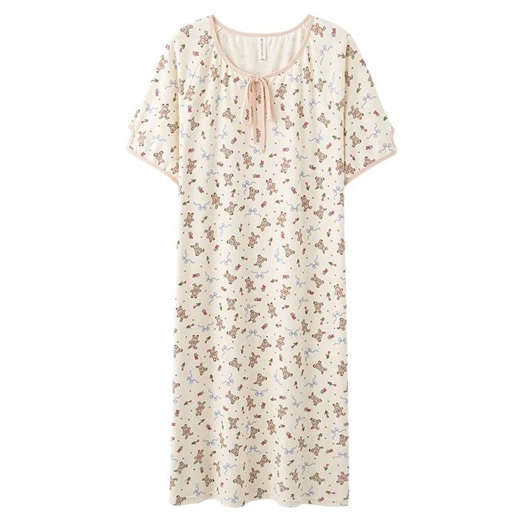 KTX-198099 Mid-length Fashion Nightdress Summer New Cotton Nightgown Cartoon Round Neck Short Sleeves Loose Loungewear Dress