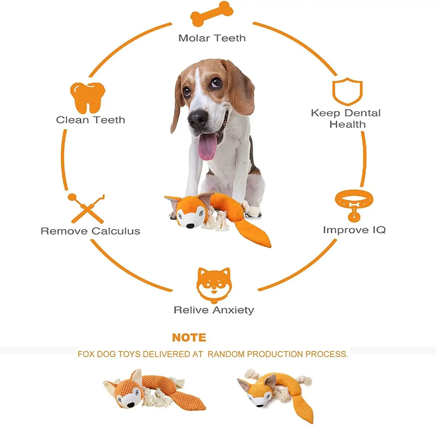 KTX-389075 Durable Interactive Plush Dog Toy with Squeaker – Cute Fox Design for Chewing and Anxiety Relief