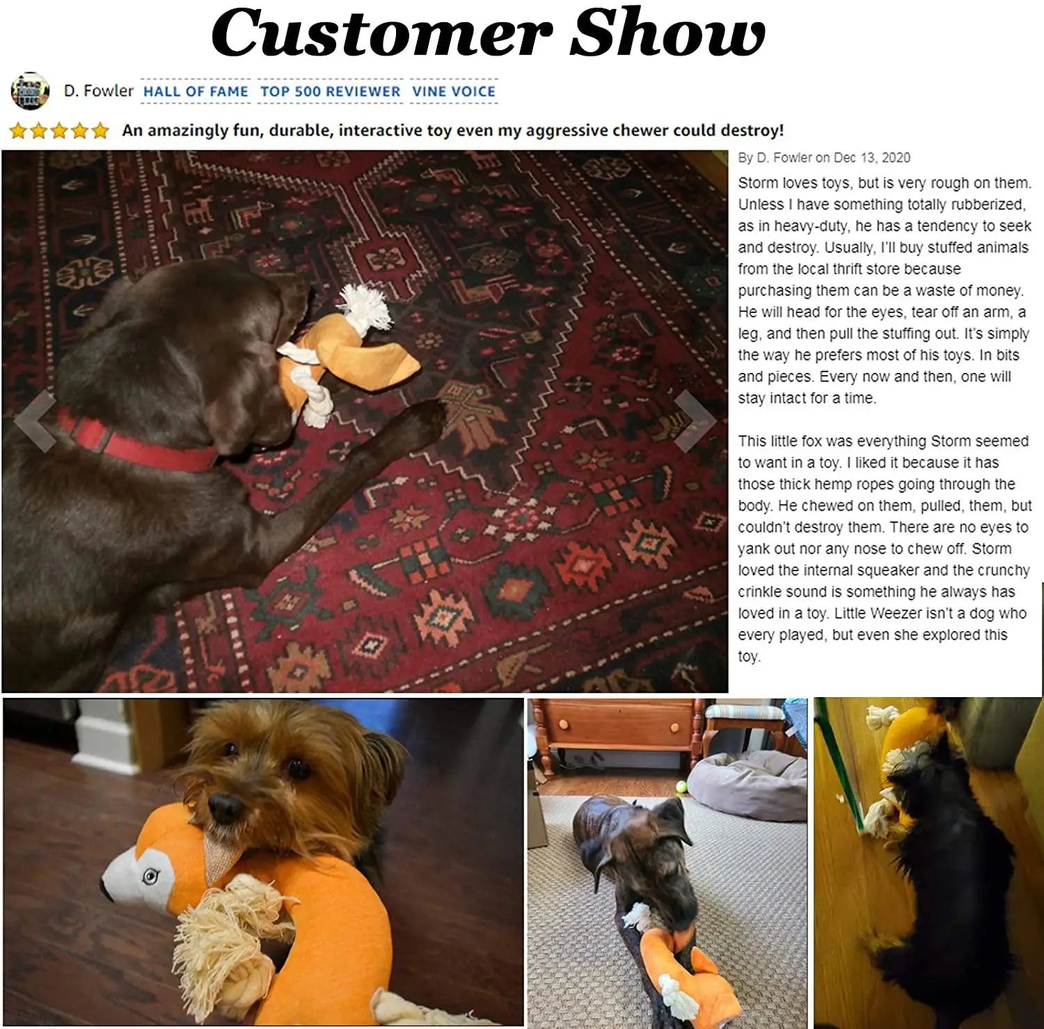 The realistic fox design satisfies your pet's instinctual need to gnaw and tug, providing both entertainment and comfort. This interactive toy serves as an ideal companion during moments of solitude, effectively alleviating feelings of boredom and anxiety. By engaging your dog with this plush toy, you can help deter destructive behaviors, like chewing on furniture.