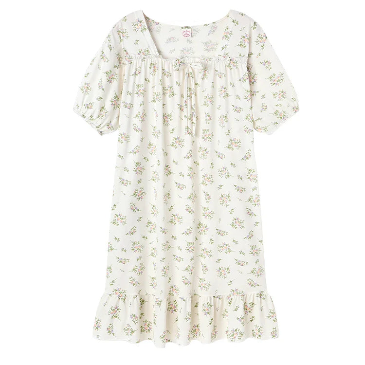 KTX-099795 Lovely Printed Women's Nightdress Cotton Short Sleeve Single Skirt 2024 Summer Loose Comfortable Cardigan Home Wear Wholesale