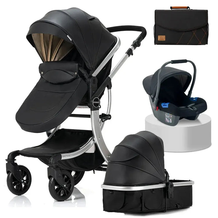 KTX-641683 Luxury 3-in-1 PU Leather Baby Stroller with High Landscape Design