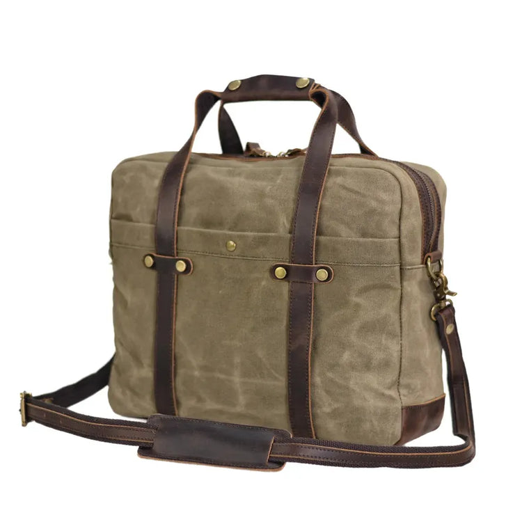 KTX-843923 Waxed Canvas and Leather Business Briefcase for 15.6 Inch Laptops - Retro Style, Waterproof, Multiple Colour Options